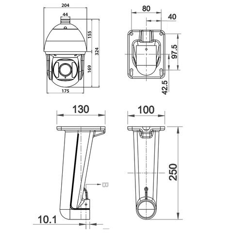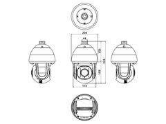 Стандарт ONVIF 2.4. Хранение FTP, Local, NVR, Условия эксплуатации -40...+60°C, Корпус металлический Ø204 x 324 мм, IP66, Питание: PoE (IEEE 802.3at) / DC12В±5% адаптер в комплекте, потребление до 25Вт, грозозащита 6000В, Мобильное приложение P6SLite.