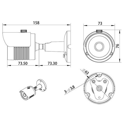 1/2.9"" GC2063, FH8852, H.265/H265+/H.264/H264+/JPEG. Разрешение 3Мп 2304*1296@30fps,  2Мп 1920×1080@30fps. Объектив 2,8 мм. Аудиовход, выход питания микрофона 12В/0,1А. Слот для SD карты до 512Гб. ИК подсветка 30м. ONVIF 2.4, 3D NR, BLC, HLC, ROI, Defog («антитуман»), 3 приватные зоны. Видиоаналитика: обнаружения вторжения. Питание:  PoE / DC12В, 900мA, 3D-Axis кронштейн, корпус-металл, IP67, рабочая температура: -40...+60°C, размеры 157х70x66мм, вес 650 г. Приложение BitVision.