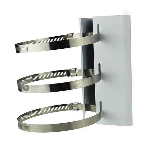 Металлическое крепление на столб. Размеры монтажной поверхности 180x115мм, максимальный удерживаемый вес не менее 10кг. Габаритные размеры (основание): 131(ш) х 43(д) х 170(в) мм, вес кронштейна 1,1кг.