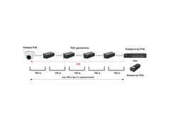 • 300м (2 удлинителя) для подключения потребителя Poe до 12Вт;