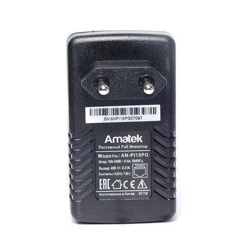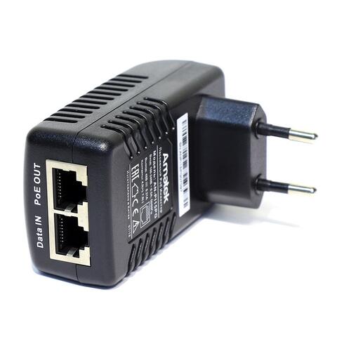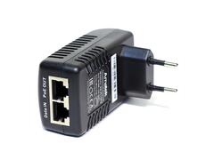 Пассивный PoE-инжектор в виде адаптера в розетку. Мощность PoE до 15,4Вт. Поддержка Passive PoE – 48В / 0.32A. Совместим с оборудованием PoE IEEE 802.3af. Порты: вход - RJ45( 10/100 Base-T), выход - RJ45(PoE). Защита от короткого замыкания и перегрузки по току с автоматическим восстановлением. Защита от скачков напряжения по выходу. Распределение контактов PoE: V+ (pin4/5), V-(pin7/8). Размеры 83x55x47 мм, Питание: AC100-240V. Рабочая температура -20...+45°C. Вес 170гр.