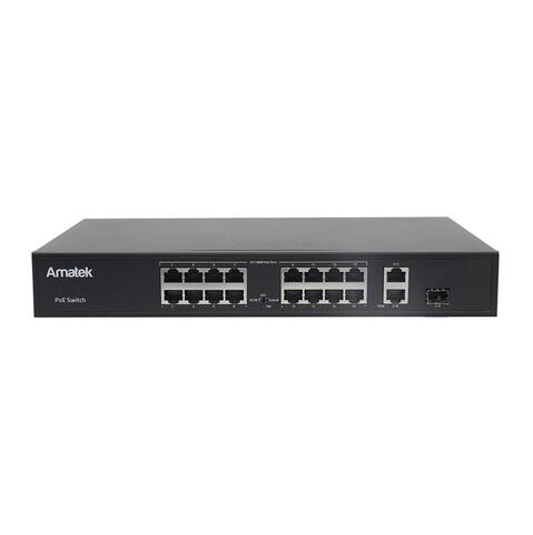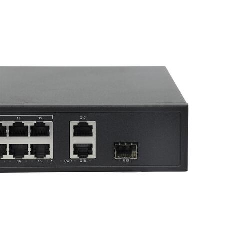 Коммутатор на 19 портов (16 PoE+ портов + 2 порта Uplink + 1 слот SFP):